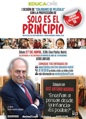 José María Caparrós. Este sábado 27 de abril se celebra en Madrid, en los céntricos cines Palafox, la primera sesión de EducaCine-“Coloquios de película”, una iniciativa educativa y cinematográfica promovida por el semanario Magisterio y la web especializada Decine21.com. Dirigida a educadores, sobre todo profesores y padres de familia.