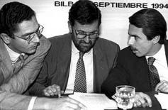 José-Tomás Cruz Varela. Una vez más, Rajoy “no pasa el corte”, expresión utilizada en golf para definir a aquellos jugadores profesionales que quedan eliminados en el segundo día, de los cuatro que dura el campeonato. Foto: Mariano Rajoy, Jose Mª Aznar y Alberto Ruiz Gallardón hace 14 años