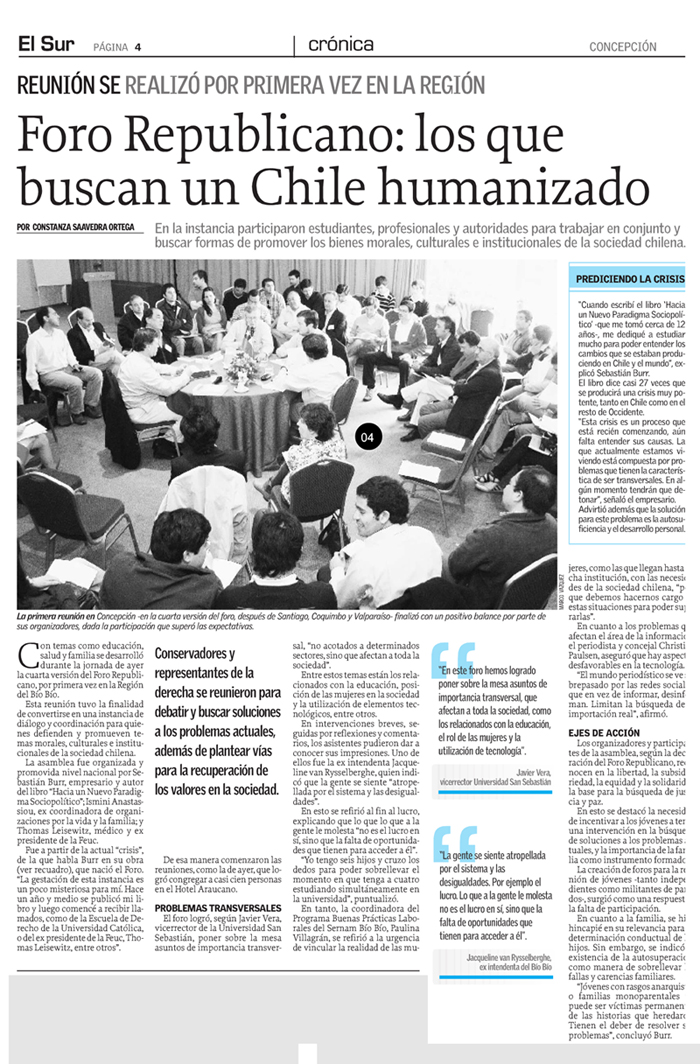 Gonzalo Rojas Sánchez. La convicción de Foro Republicano es que la solución para los múltiples problemas de Chile es cultural, y va desde el simple cultivo de la tierra hasta el refinado culto a Dios.