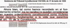 La Lupa del YA. Fue el 17 de junio de 1999 cuando el Tribunal Constitucional cometió un gran atropello a la dignidad del Ser Humano. "Los no nacidos no pueden considerarse en nuestro ordenamiento constitucional como titulares del derecho fundamental a la vida que garantiza la constitución" dictaba la Sentencia.