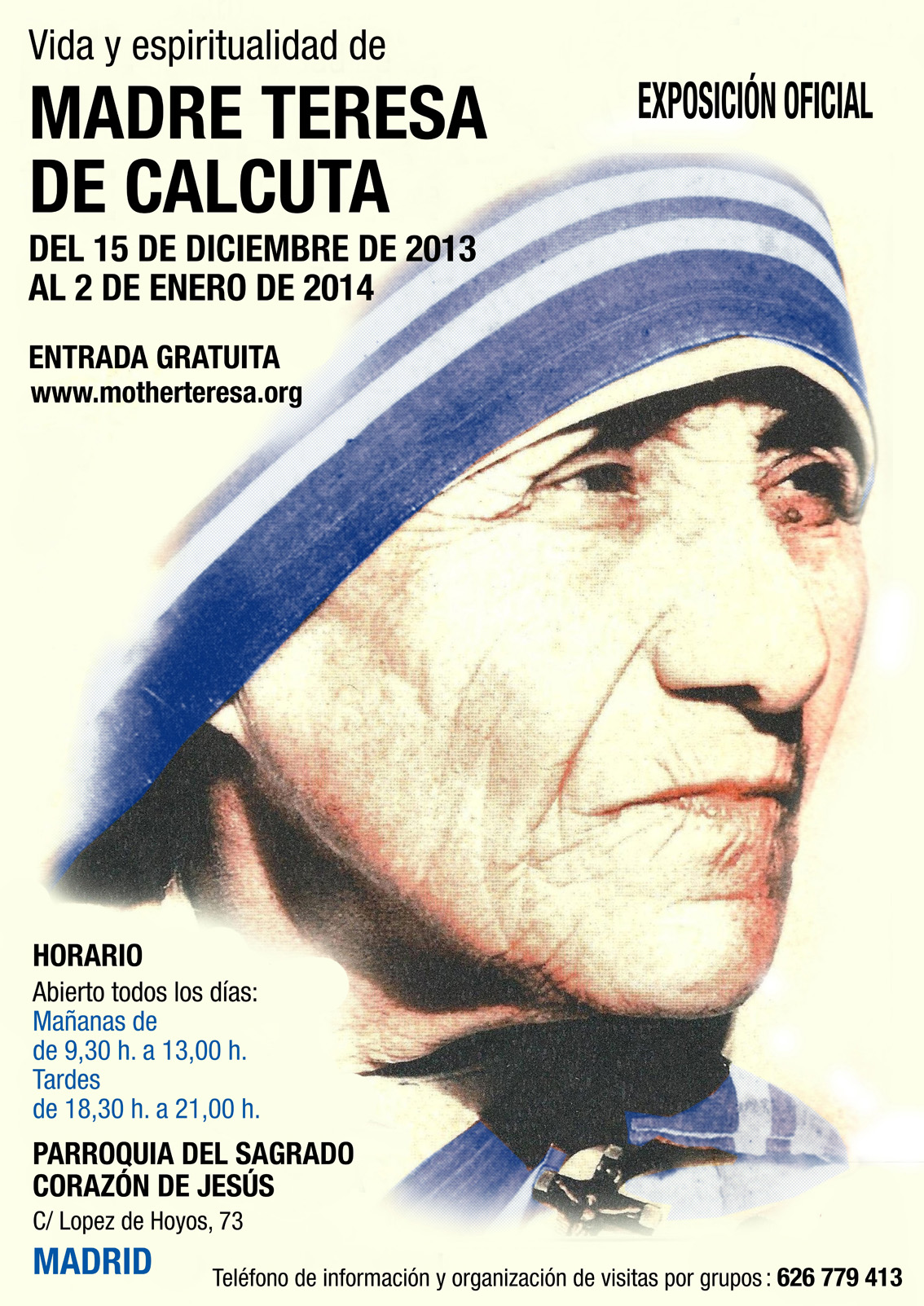 La exposición de la Madre Teresa de Calcuta vuelve a Madrid, al barrio de Prosperidad.Esta exposición es la misma, pero adaptada al espacio que tiene, a la que tantos jóvenes pudieron contemplar durante la Jornada Mundial de la Juventud de Madrid en 2011. Durante este tiempo ha ido peregrinando por varias ciudades: Madrid, Sevilla, Talavera, San Sebastián, Bilbao, Orense, Santo Domingo de la Calzada, Coruña, Boadilla del Monte, Cáceres, Burgos, Teruel, Valencia, Badajoz, Vigo…