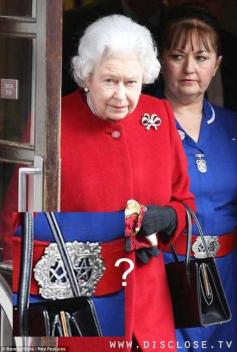 En las fotos se aprecia claramente que la hebilla del cinturón de la enfermera que acompañó a la reina de Inglaterra hasta la salida del hospital "King Eduard VII" es un escudo masónico que contiene una escuadra y un compás y una estrella de cinco puntas o pentagrama.