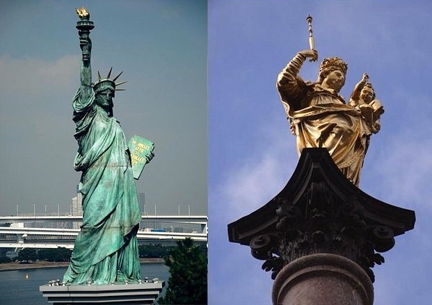 Manuel Morillo. Los símbolos de dos cosmovisiones opuestas, el del relativismo totalitario liberal, que concibe al hombre como un ser autónomo e independiente de Dios, y el del catolicismo libertador y dignificador, que concibe al hombre como una criatura de Dios.