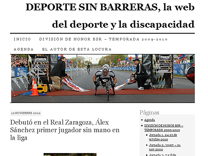 Manu González. El 6 de febrero de 2009 nacía www.deportesinbarreras.net, una iniciativa en forma de blog, destinada a cubrir un hueco en Internet: La información relacionada con el deporte y las personas con discapacidad. Hoy, diez meses después, este humilde blog, se ha ido abriendo un hueco en el extenso mundo de la “red” y ya se puede decir que se ha convertido en un referente para los internautas.