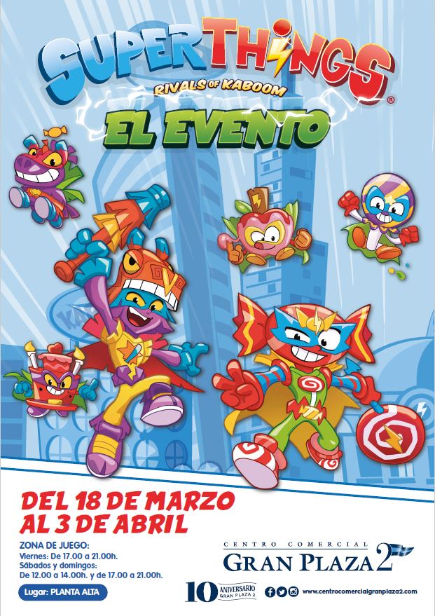 Desde el próximo día 18 de marzo y hasta el 3 de abril, el centro comercial Gran Plaza 2, en Majadahonda, albergará el evento Superthings, lleno de sorpresas para los visitantes. Los Superthings son los personajes de moda, cientos de héroes y villanos representados por objetos de la vida diaria. Una propuesta de gran éxito que regala horas de juego a los más pequeños potenciando su imaginación.