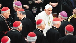 La Lupa del YA. Ante las informaciones publicadas en internet, aclaramos que los obispos alemanes No faltaron en ningún momento al respeto a Su Santidad Benedicto XVI. El Papa, como se ve en las imagenes, estaba presentando al presidente de Alemania a los obispos. Los obispos no estaban saludando al Papa.