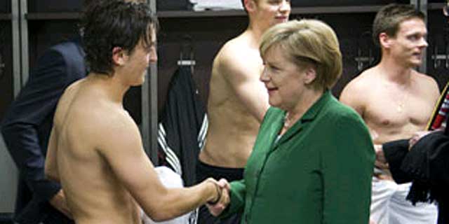 La foto levantó ampollas entre los casi tres millones de turcos que viven en Alemania, que sufrieron doblemente el gol marcado por Özil, de familia turca, con la camiseta alemana a la selección turca, y Merkel ha tenido que pedir disculpas. Y además... ¡Qué hacía en el vestuario!