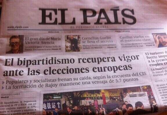 La Lupa del YA. Nueva encuesta de El País. En ella indican una aproximación del PSOE al PP. ¿Pero qué validez tienen estas encuestas maquilladas del diario de PRISA? No hay más que recordar lo que publicaron unos días antes de las últimas elecciones europeas. ¿Recuerdan? “El bipartidismo recupera vigor” titulaban a plena portada, justo lo contrario de lo que ocurrió unos días después.