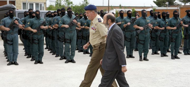 César Román. A Rubalcaba se le quedaba cara de pocos amigos y dóberman casquista cuando recibió una pitada en el colegio de Valdemoro en la festividad del día del Pilar. Familiares, amigos y guardias civiles le recibían con silbidos y abucheos.